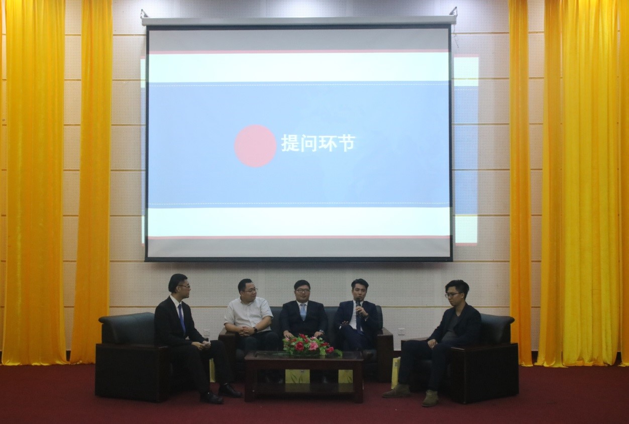 2019年5月17日19时,中山大学南方学院第四期校友论坛在图书馆学术报告厅顺利举行,本次论坛的主题为“粤港澳大湾区发展规划之金融机遇与挑战”。校友总会邀请了2008级经济学专业黄先宁(广州金控期货有限公司深圳营业部总经理)、2009级酒店管理专业校友陈宇聪(光大金控财金资本有限公司营业部总经理)、2009级会计学专业校友苏志东[毕马威企业咨询(中国)有限公司风险高级顾问]、2013级工商管理专业校友苏显铸(深圳市金斧子基金销售有限公司团队主管/高级投资顾问)做为主讲嘉宾。中山大学南方学院常务副校长、副书记唐燕老师,365英国上市官网在线院长何兴强教授,学校团委副书记、学校校友总会秘书长陈思思老师,学生工作部副部长刘浪英老师,外国语学院党总支副书记兼学生工作办公室主任马思伟老师,365英国上市官网在线互联网金融专业主任朱海鹏老师,365英国上市官网在线行政办公室主任聂聪老师出席了本次论坛。